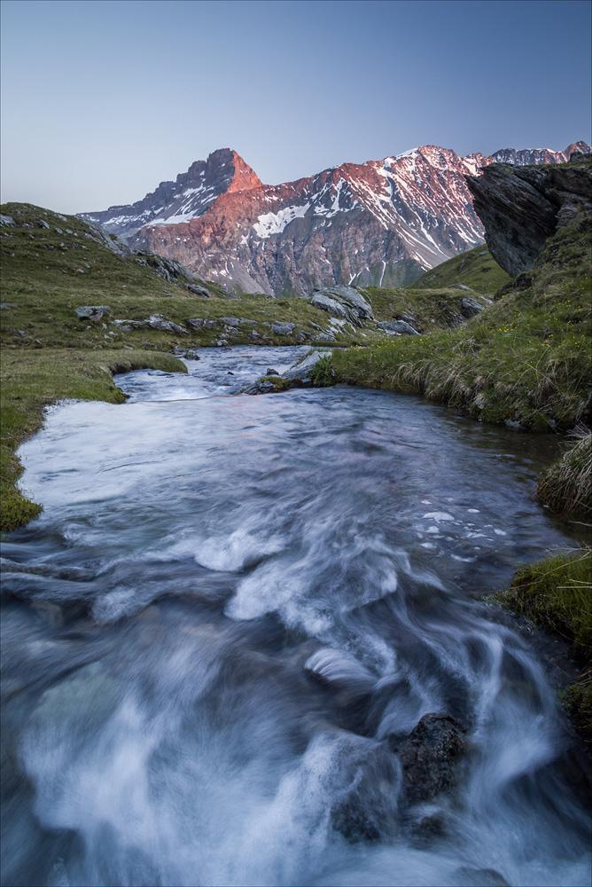 C’est une vue que je connaissais particulièrement bien, pour avoir longtemps trainé mes guêtres sur les flancs du Mont Pourri. Mais je n’y avais pas souvent amené mon appareil photo, à moins que je n’avais pas trouvé le temps de le sortir, l’ambiance du refuge m’ayant retenu ailleurs qu’au bord de ce petit lac. Ce soir-là j’étais pourtant bien décidé à ramener quelques photos, en attendant de remonter une seconde fois au sommet du Mont Pourri.