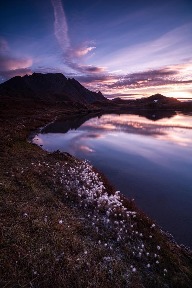 « La marche des linaigrettes » est une photo de paysage de montagne que j’ai réalisée en 2021 lors d’un bivouac dans le massif du Beaufortain. Au petit matin, les nuages se sont enflammés pour mon plus grand plaisir, accompagné que j’étais de cette petite bande de linaigrettes en goguette.
