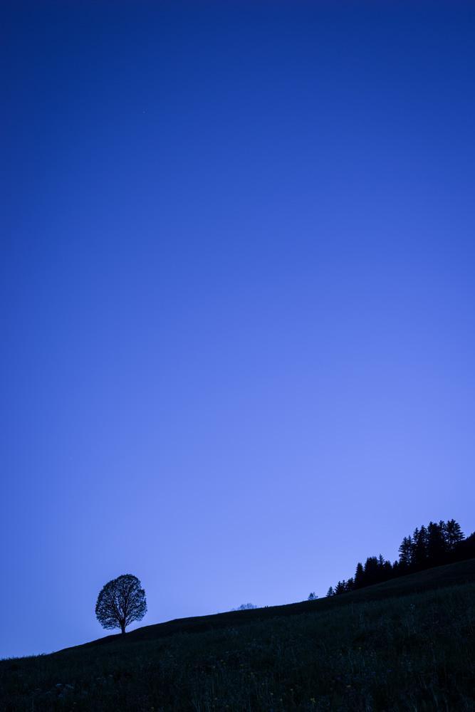 « Le solitaire de la récré » est une photo de la série « Maurice l’érable » que j’ai réalisée en Mai 2021 à l’heure bleue sur les hauteurs de Bourg Saint Maurice (Savoie).