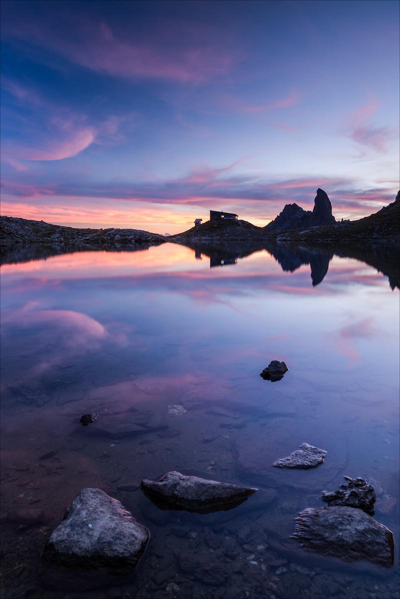 Près de quinze ans après ma première nuit dans ce refuge, j’avais voulu y retourner. Ça avait été une des premières fois où j’étais très content de la plupart de mes photos. Je découvrais l’objectif ultra grand angle, les filtres dégradés gris, bref je peaufinais ma technique de photo paysagère. J’avais donc très envie de voir si je saurais faire mieux quinze ans plus tard. Revenir sur des lieux connus a rarement été fructueux pour moi, au point de me demander si certaines photos n’ont été simplement des coups de chance !