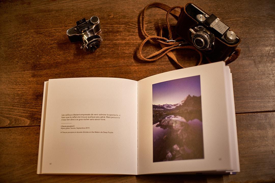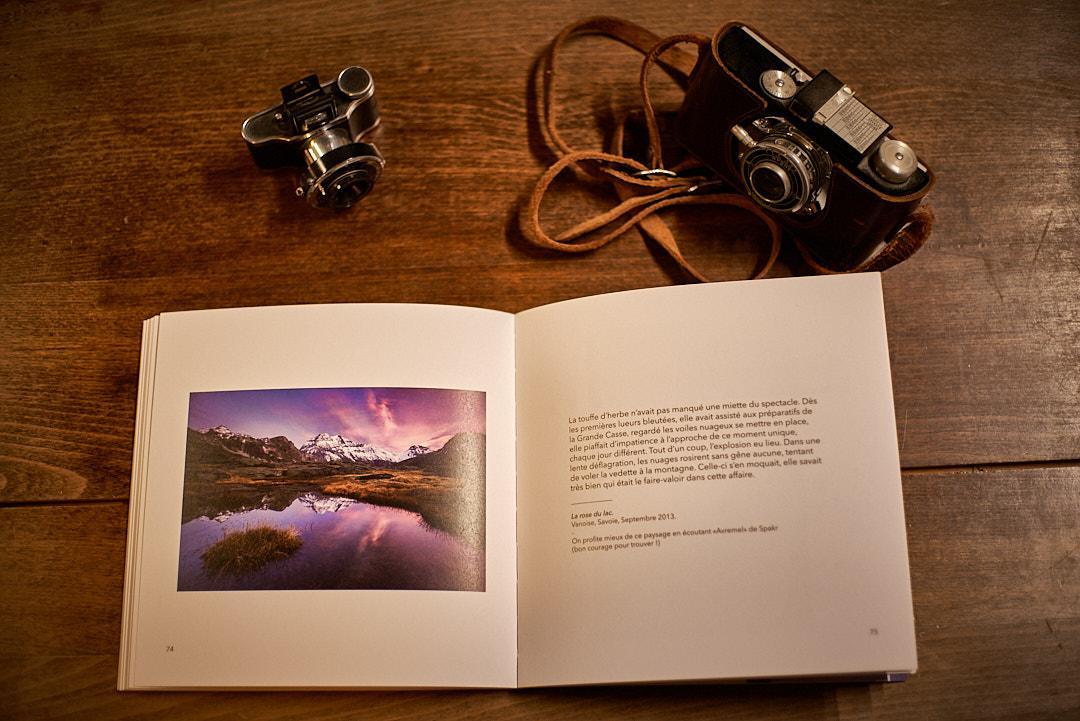 Le livre « Poèmes lacustres » est un recueil de photographies issues de ma série éponyme. Au fil des expositions, les discussions avec le public ont fini par me convaincre à proposer quelque chose de plus que mes tirages d’art. Je me suis aperçu que mes petits poèmes étaient très appréciés, au point qu’on me demande parfois de les recopier. Et puis, mon exposition ne montre qu’une quinzaine de photographies alors que la série « Poèmes lacustres » est bien plus riche. L’idée de proposer une plus grande sélection d’images associées à leurs poèmes m’a décidé à franchir le cap du livre photo.